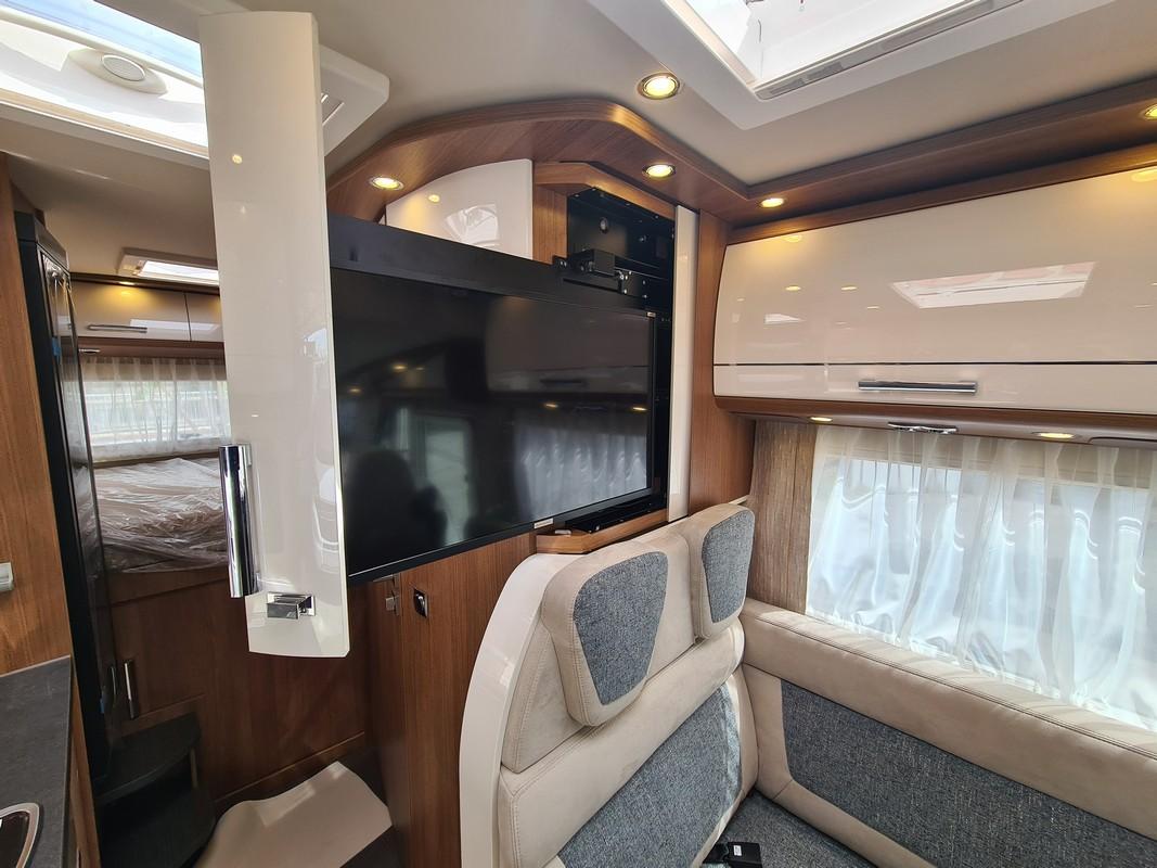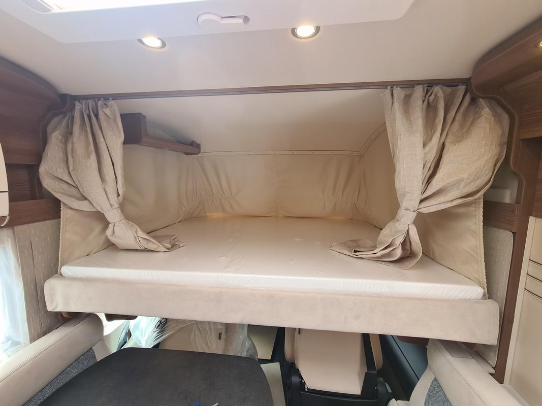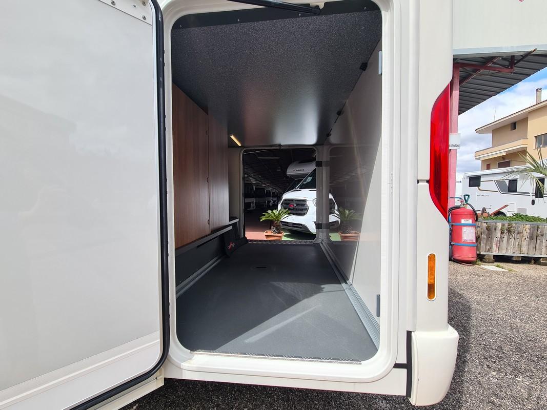 Dotazione: Ridotta lunghezza del veicolo studiata appositamente per la categoria di peso da 3,5 t, gruppo sedute a L e panca laterale apribile, ampio letto trasversale nella zona posteriore